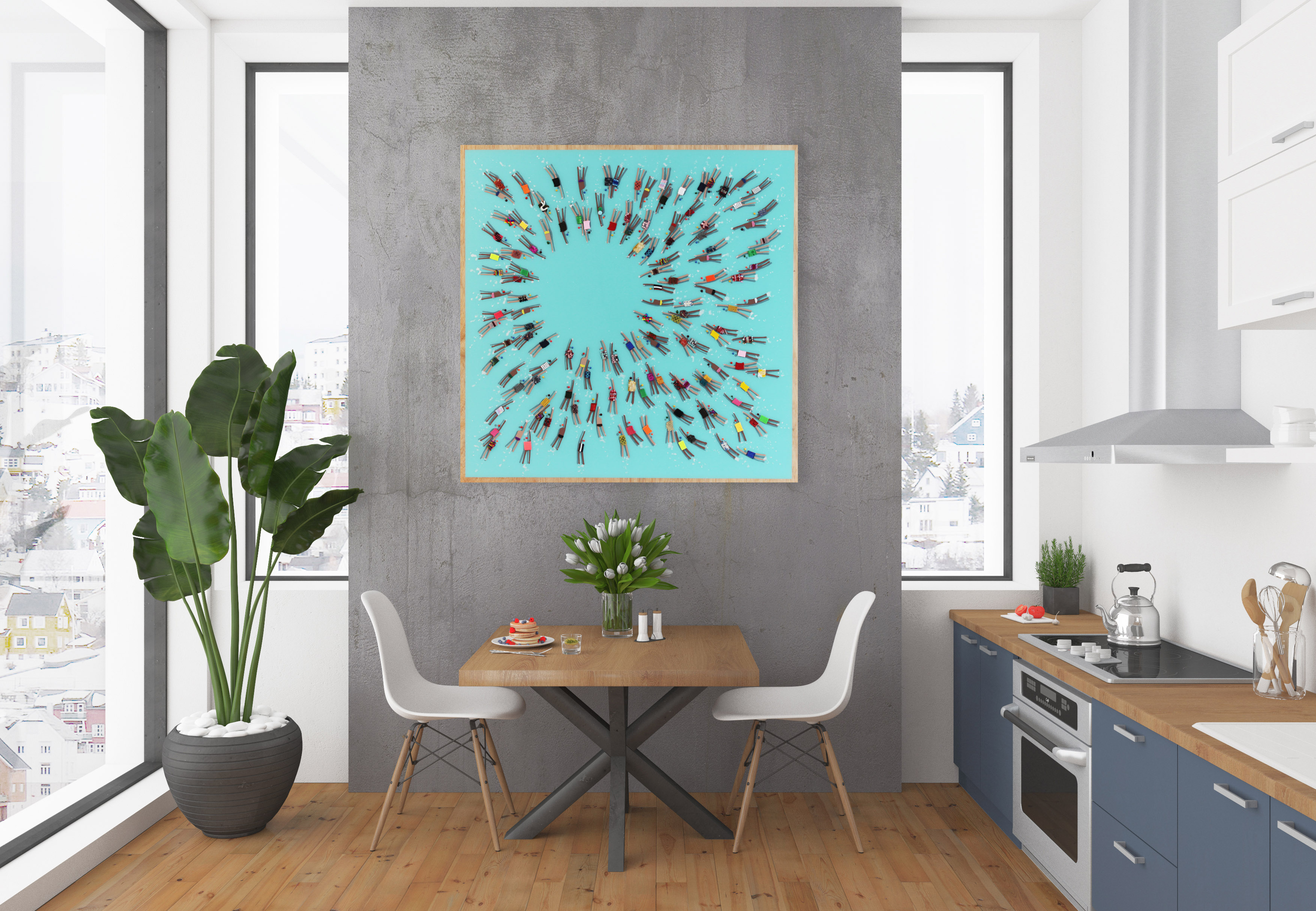 Está realizada sobre madera y terminada con resina epoxi de alto brillo, lo que le aporta una superficie vibrante, resistente y lista para colgar. Los bordes de la madera forman parte del diseño, por lo que no necesita marco adicional.